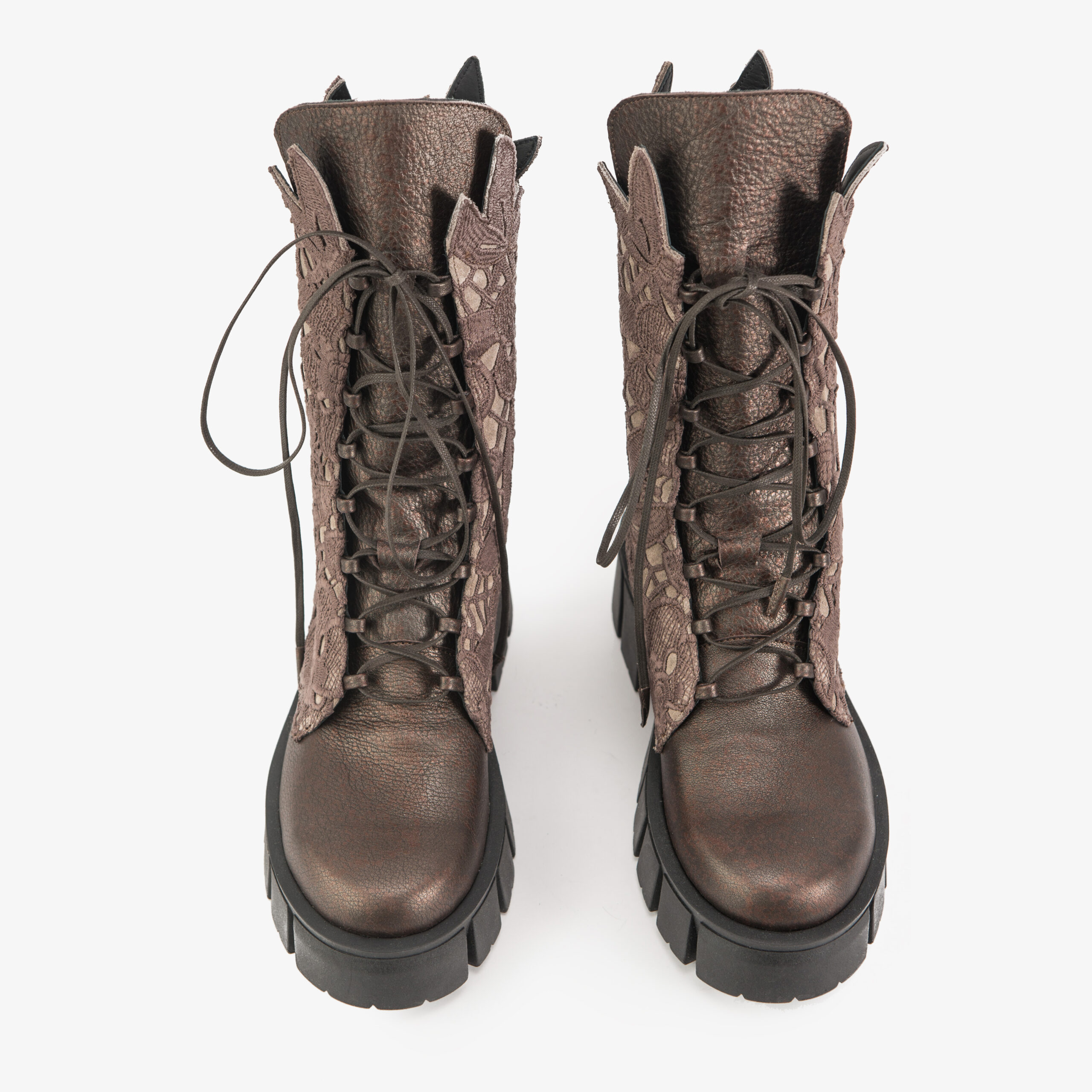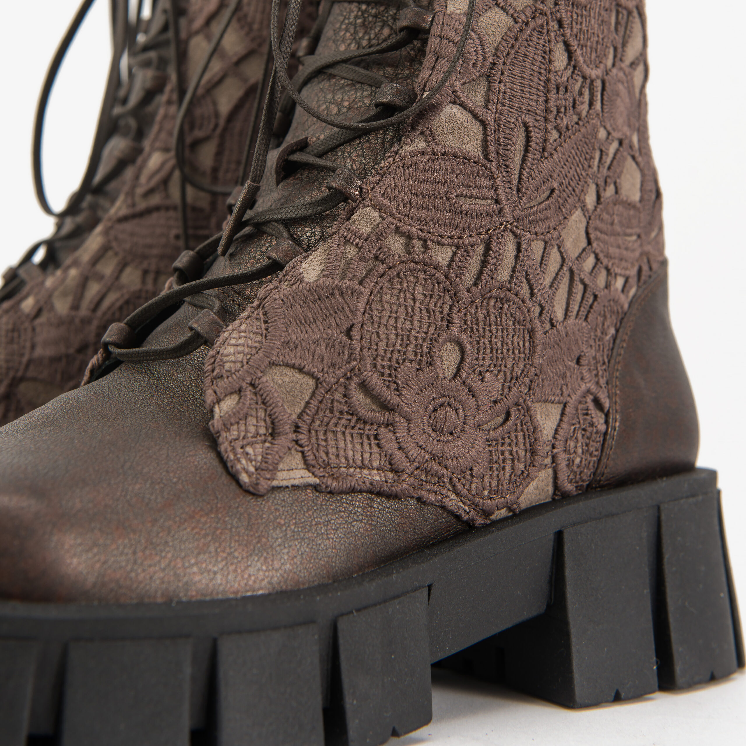 Partea superioara: piele si broderie frantuzeasca
