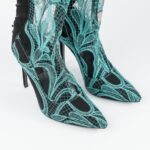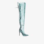 Cizme peste genunchi din tulle meetalic brodat transparent