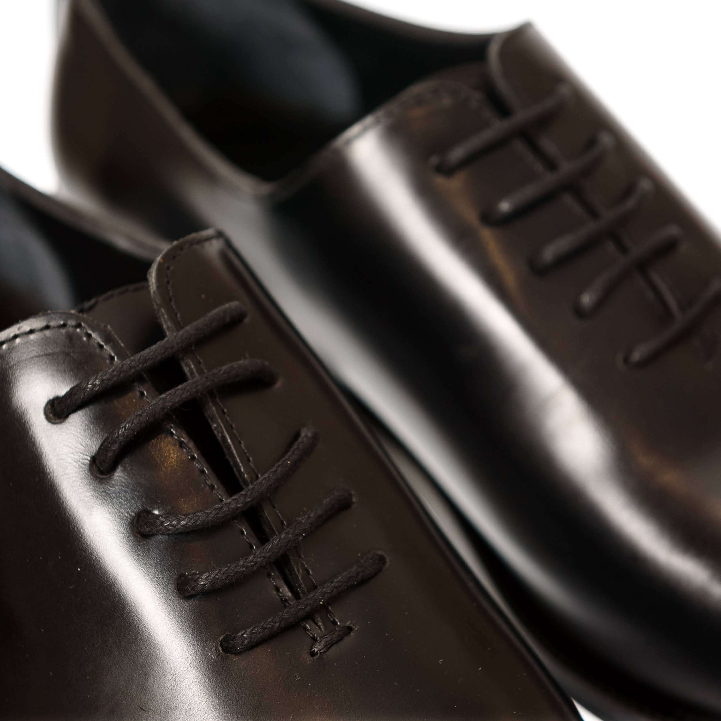 Pantofi Oxford, lucrați manual din piele naturală lacuita semimata.