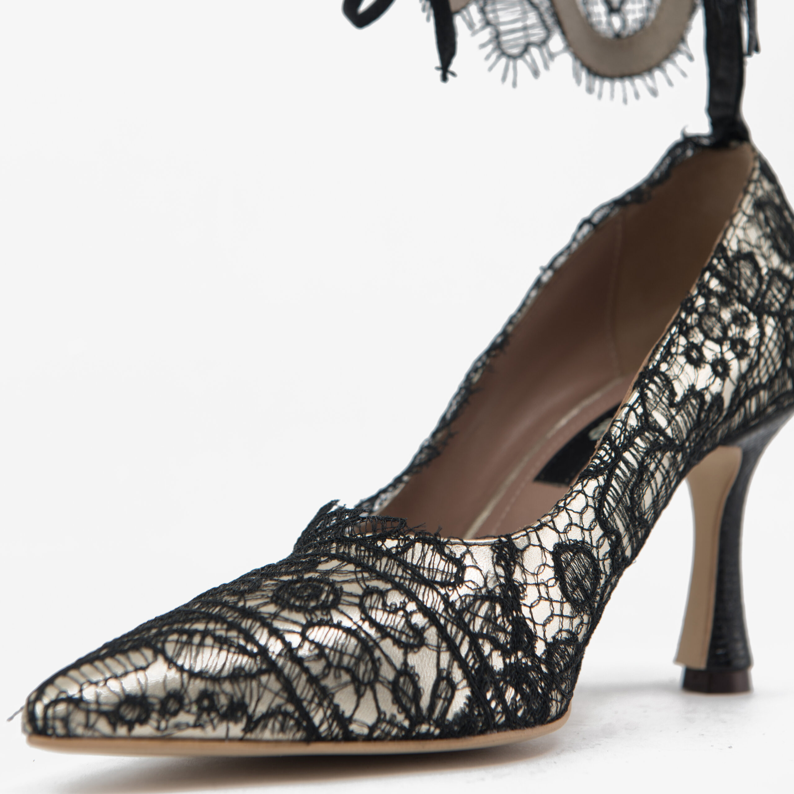 Partea superioara: piele naturala si broderie frantuzeasca